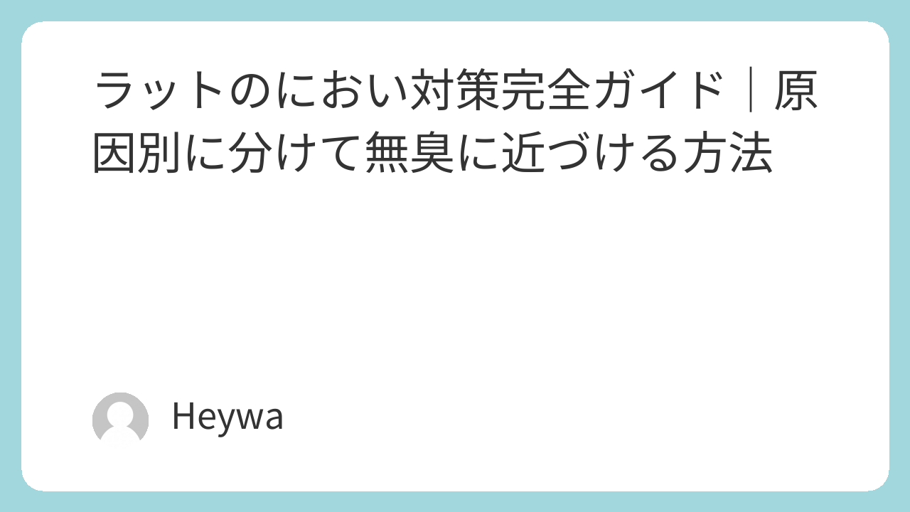 導入|ラットのにおいは「飼い方」でほぼ決まる