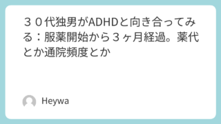 ADHD 30代独男がADHDと向き合ってみる:服薬開始から3ヶ月経過。薬代とか通院頻度とか