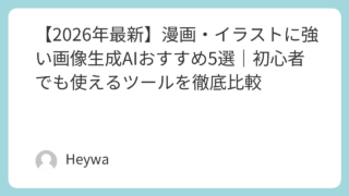 雑記帳 【2026年最新】漫画・イラストに強い画像生成AIおすすめ5選|初心者でも使えるツールを徹底比較 「漫画の挿絵をAIで作りたいけど、どのツールを使えばいいの?」「画像生成AIってたくさんありすぎて、どれが漫画向きかわからない…」そんな悩みを抱えていませんか?実は、画像生成AIの中でも「漫画・アニメ系イラスト」に特化したツールがいくつか存... 2026.04.13 雑記帳