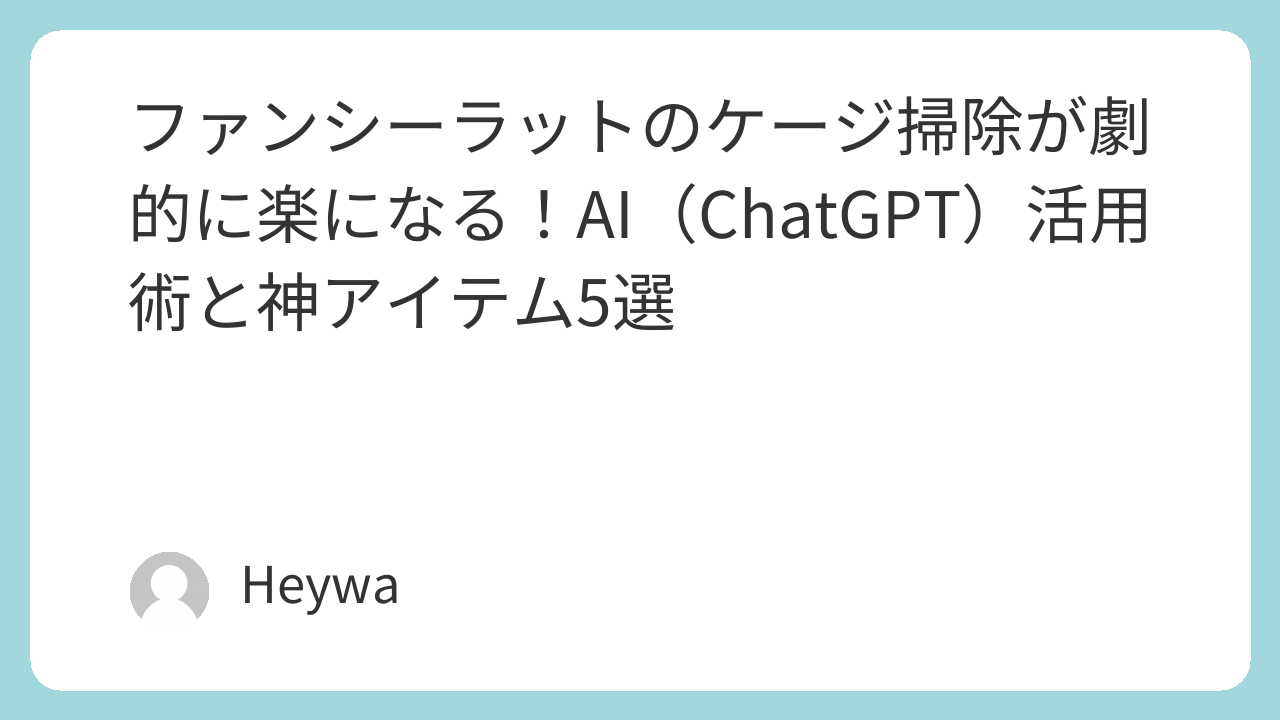 この記事では、ファンシーラットのケージ掃除を劇的に楽にするための「AI(ChatGPT)活用術」と、実際に使って効果を実感した神アイテム5選をご紹介します。掃除の負担を減らして、もっとラットたちとの触れ合いの時間を増やしましょう!