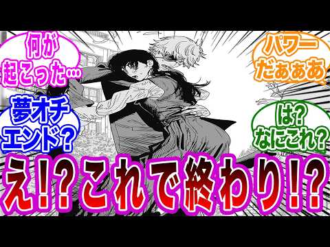 Twitterでは「チェンソーマンの最終回が夢落ちだった」という意見が多く見られました。具体的には、「この結末は納得できない」というコメントが目立ち、ファンの間で賛否が分かれています。5ちゃんねるのスレッドでも、「最終回は打ち切りのような終わり方だった」という意見がありました。