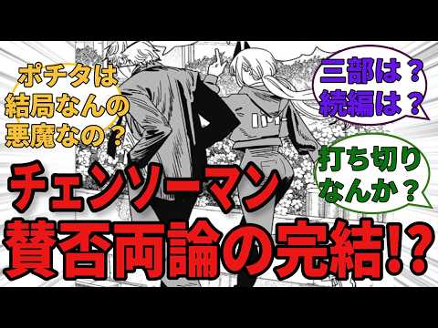 Twitterでは、「チェンソーマン第2部最終回」に対する様々な意見が飛び交っています。「この終わり方は納得できない」といった声が多く見られ、特に「エヴァンゲリオン最終回のような唐突さを感じた」という意見が目立ちました。具体的には、「もっと説明してほしかった」というコメントが多く、ファンの期待に応えきれなかったという声が多く見受けられました。