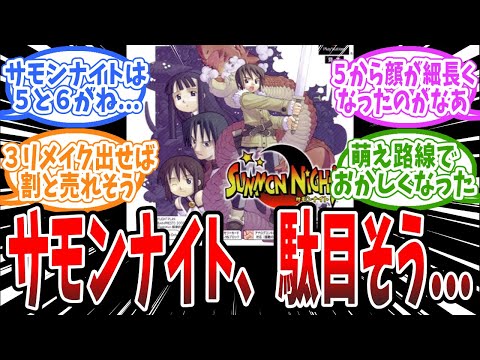 動画のコメント欄やSNSでは、サモンナイトに対する様々な意見が寄せられています。Twitterでは「サモンナイトの新作が作られないのは残念だ」という意見が多く見られました。特に、初代や2のリメイクを希望する声が強いです。また、5や4に対する批判も多く、キャラクターやシナリオに対する不満が目立ちました。