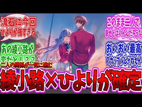 Twitterでは「ひよりと綾小路のカップルは最高!」という意見が多く見られました。特に「彼らの関係性がリアルで共感できる」というコメントが目立っていました。また、5ちゃんねるのスレッドでは「ひよりの成長が楽しみ」といった声があり、多くのファンが彼女の今後に期待を寄せていることがわかります。YouTubeのコメント欄でも、「彼らの関係がどのように進展するのか楽しみ」といった反応が多く、視聴者の期待感が表れています。