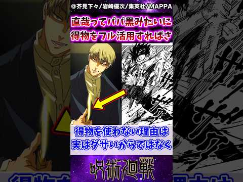 - 禪院直哉の戦闘スタイルは、父である黒閃との比較がされている。