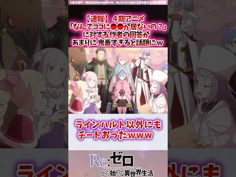 『リゼロ』の作者は、特定のキャラクターが4期のパーティーにいない理由を「物語の進行上必要だから」と説明しています。この回答は、ファンからの反響が大きく、ある意味で「鬼畜」とも言われる内容です。私自身、過去に『リゼロ』のキャラクターがどのように物語に寄与しているのかを考えることが多く、特にこのキャラクターの存在が物語に与える影響は計り知れないと感じています。