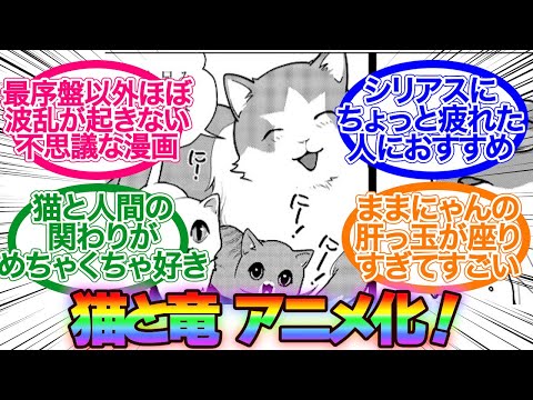 Twitterでは「猫と龍は最高!」という意見が多く見られました。特に、「猫の可愛さがたまらない」というコメントが印象的でした(例:「猫が可愛い!この作品に出会えてよかった!」)。また、5ちゃんねるのスレッドでは、「ストーリーも面白いし、キャラクターが魅力的」といった意見も多く、肯定的な反応が目立ちました。一方で、一部の視聴者からは「シリアスな展開が少し物足りない」との批判もありましたが、それも作品の個性として受け入れられているようです。