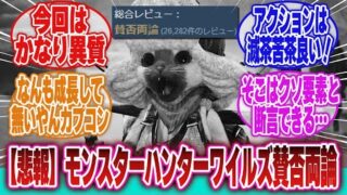 アニメ 【モンスターハンターワイルズ】「賛否両論になった理由が最適化不足だけじゃなくて、ゲーム内容まで言われてるのがもうね…」に対するネットの反応集 モンスターハンターワイルズの賛否両論についての私の考察私が初めて「モンスターハンター」というシリーズに触れたのは、ちょうど10年前のことでした。その頃、私は友人から「モンスターハンター3G」を借りてプレイし、その魅力にすっかり虜になりました... 2026.04.09 アニメ