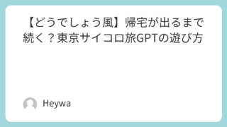 こんにちは、Heywaです。「東京でどこ行く?」って、選択肢が多すぎて逆に決められないことありませんか。そんな“決めるストレス”を、ゲームに変えるために 「東京版 サイコロ旅GPT」 を公開しました。✅ 行き先候補を 1〜6 で出してくれる...